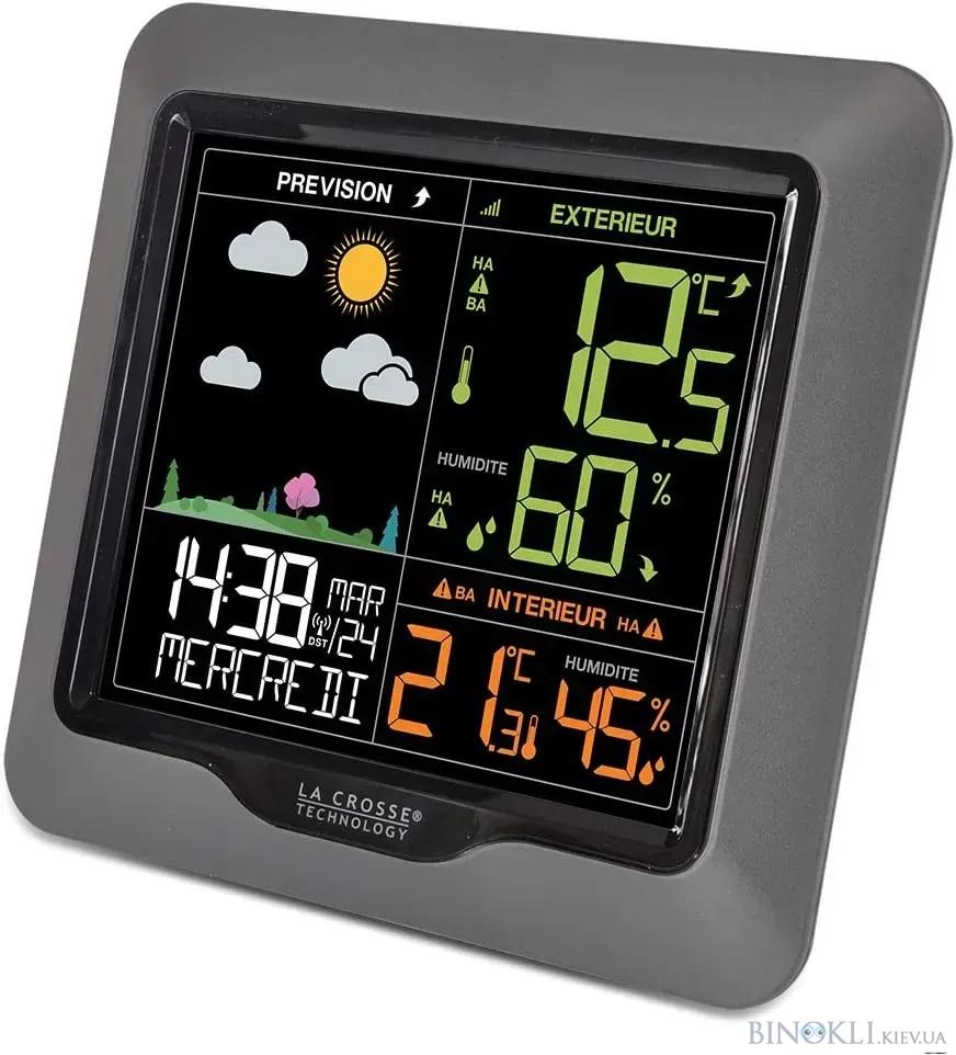 Метеостанція La Crosse WS6822 - оригінальна багатофункціональна погодна станція з контрастним кольоровим LCD-дисплеєм, прогнозом погоди на найближчі 12 годин, вимірюванням внутрішньої та зовнішньої температури та відносної вологості.
